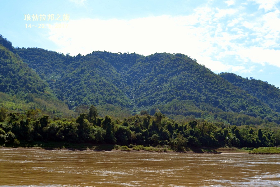 一路上,湄公河两旁都是青葱的山脉,河边都是当地居民的房子,还有不少停靠在河边的船只,有时还看到当地居民乘坐小船越过湄公河,或是在河上捕鱼。河中央有时是一块块的岩石,有时是一小片的沙地。