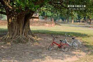 大概半小时多的路程,我们终于抵达了设立在路口的售票亭。付了入门费后,也就是每人100泰铢,还有脚车的入门费是每辆10泰铢,看着眼前进入素可泰历史公园西区的小路,空空荡荡的、冷冷清清的,我的心情却是轻松的,因为我又可以随意的骑脚车了。