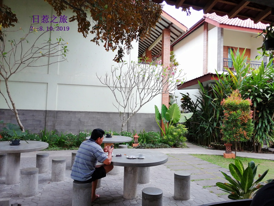 我们把早餐固本递给服务员后,就把食物盛到盘子里,然后随意的找了个位子坐下。这里的食物真的很好吃,食材新鲜,口味不会很重也不油腻。餐厅外头的景色也蛮优美,除了到处栽植绿色的植物,营造一个绿意盈盈的环境,这里的装潢布置相当精致和美观,拥有浓厚的巴厘岛气息。